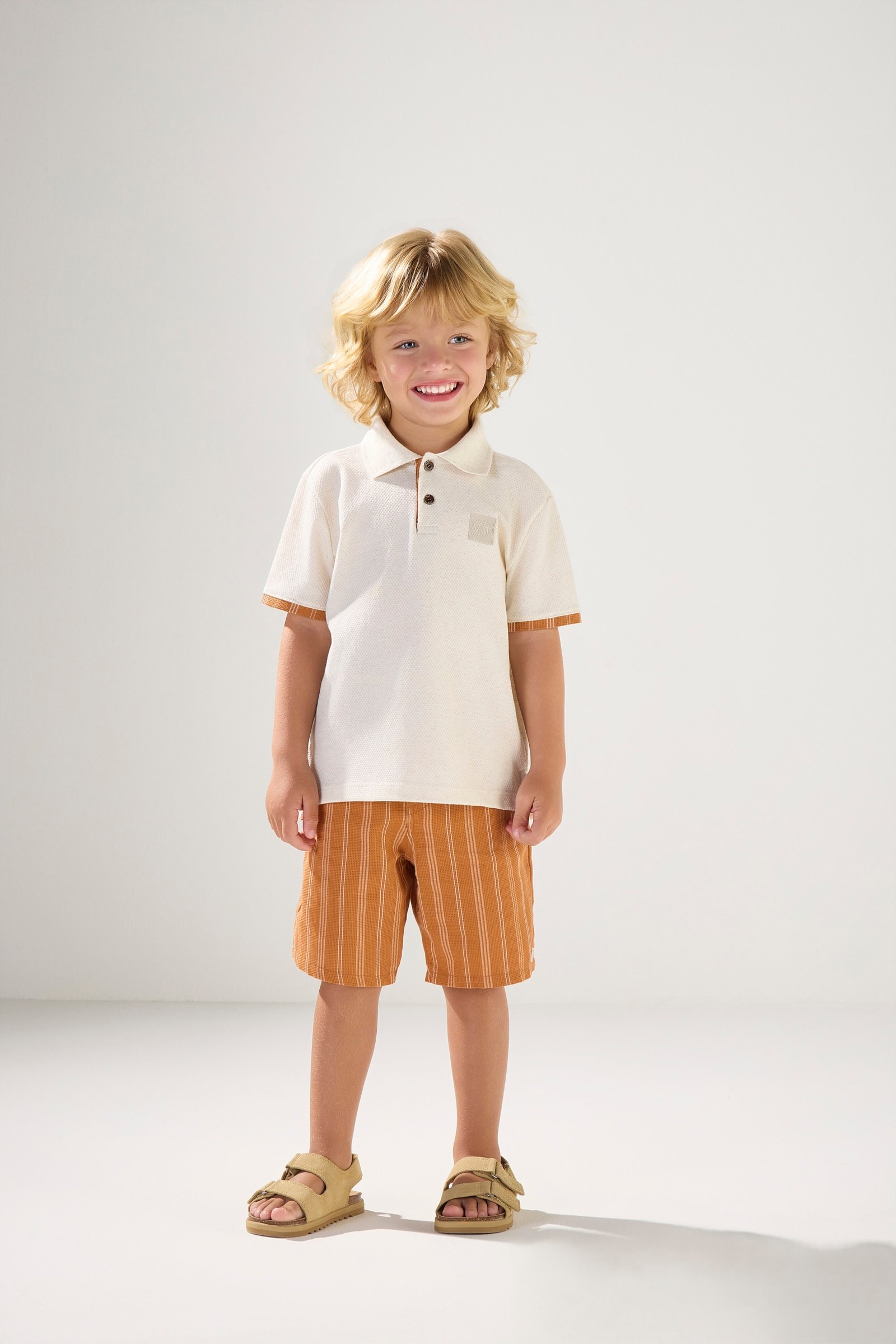 Camisa polo texturizada e bermuda