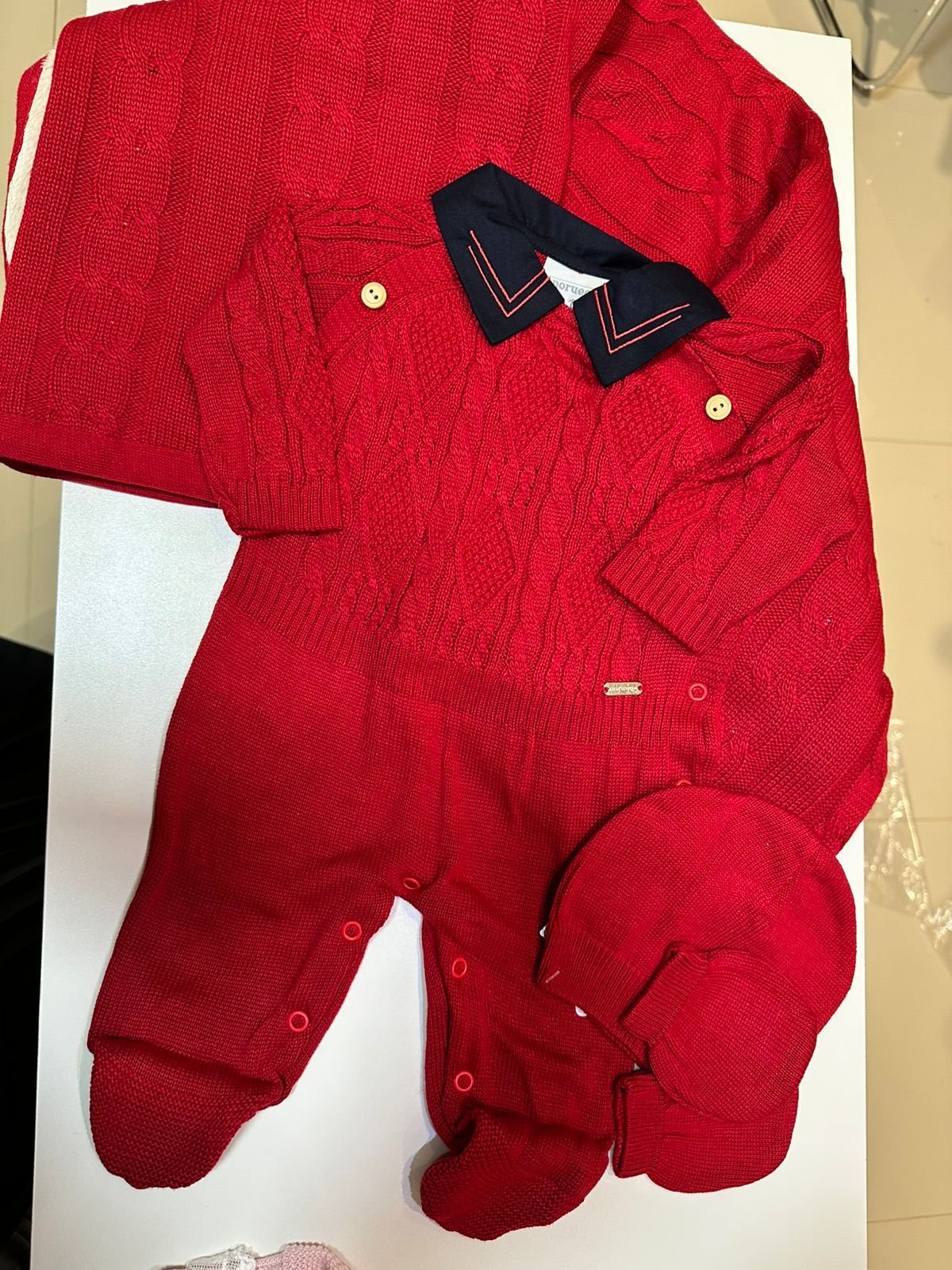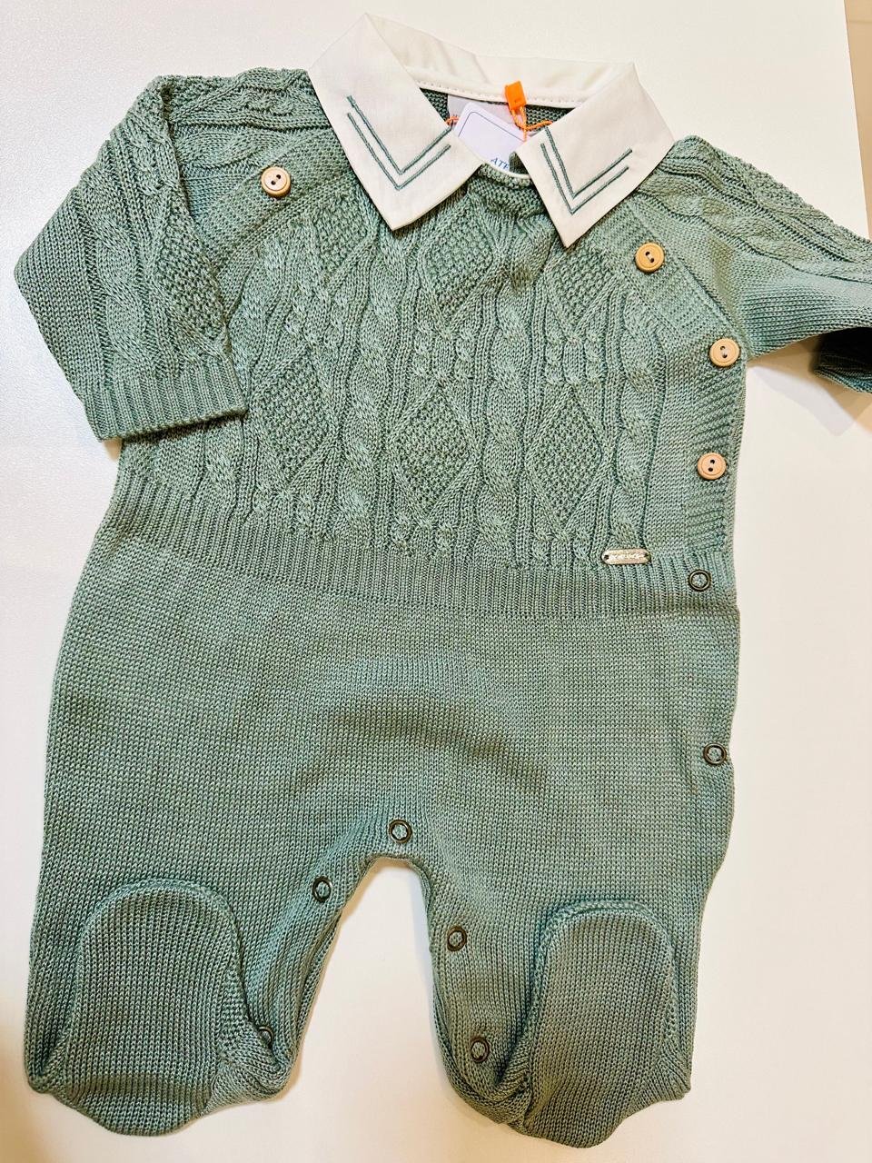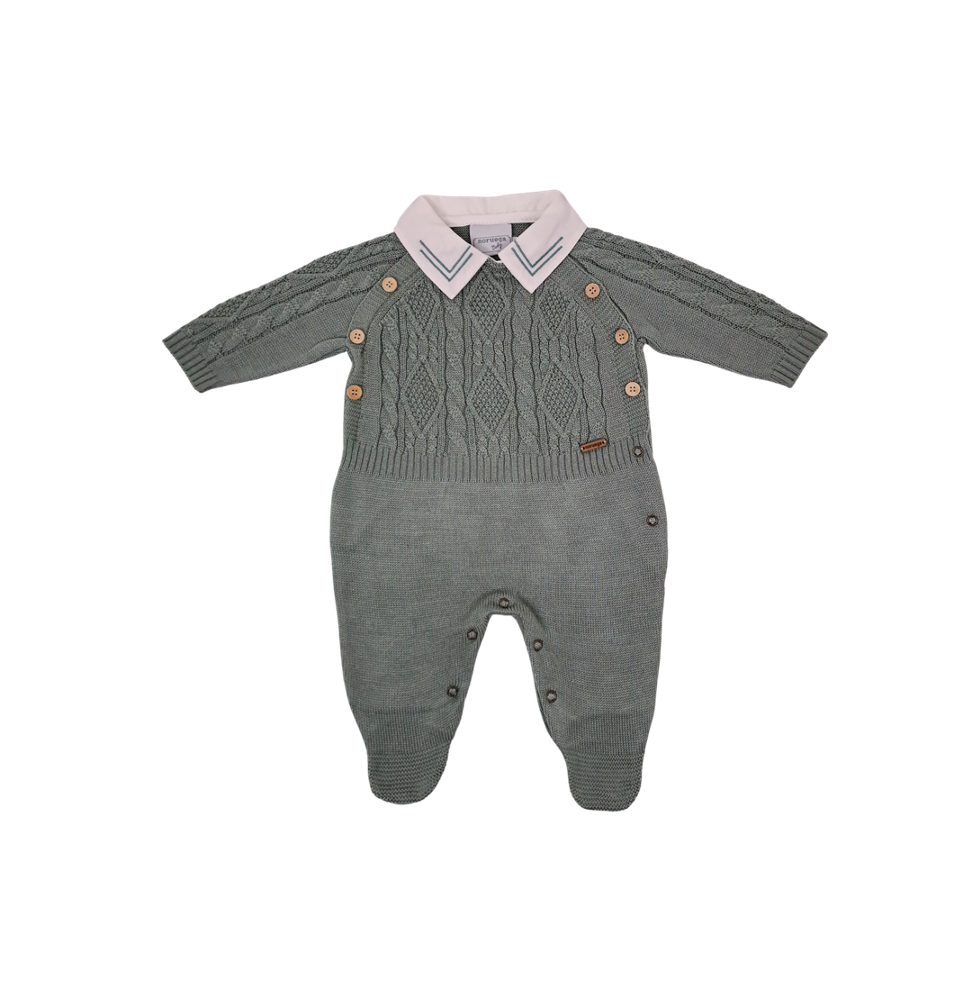 Macacão em tricot trançado com gola de camisa