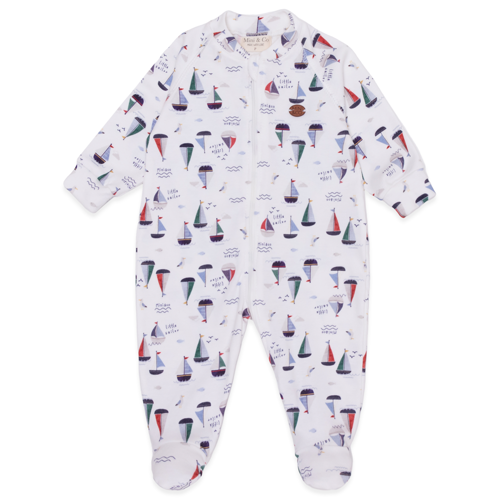 - Macacão manga longa em algodão egípcio com estampa de barquinhos