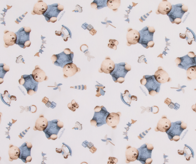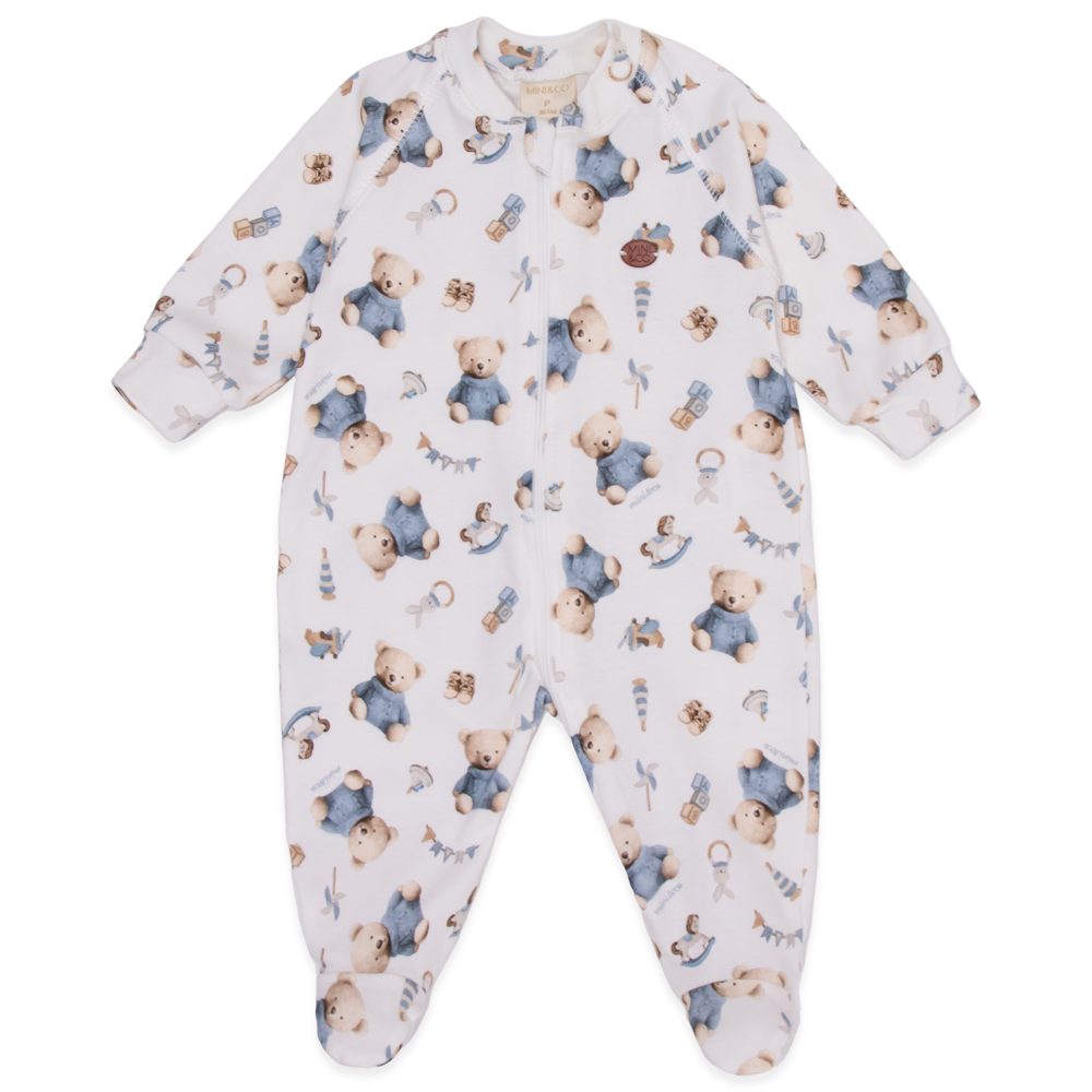 - Macacão manga longa em algodão egípcio com estampa de ursinho azul
