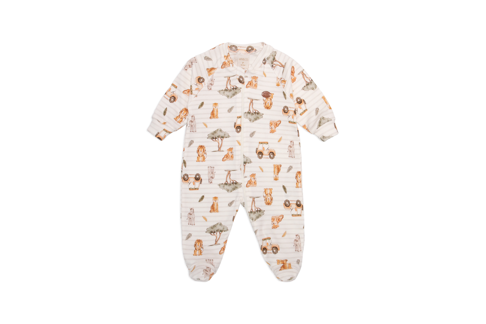 O macacão possui pé apenas nos tamanhos “RN”, “P”, e punho nos tamanhos “M”, “G”