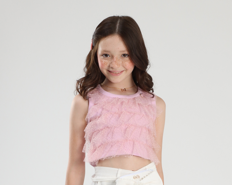 Regata canelada com babadinhos em tule