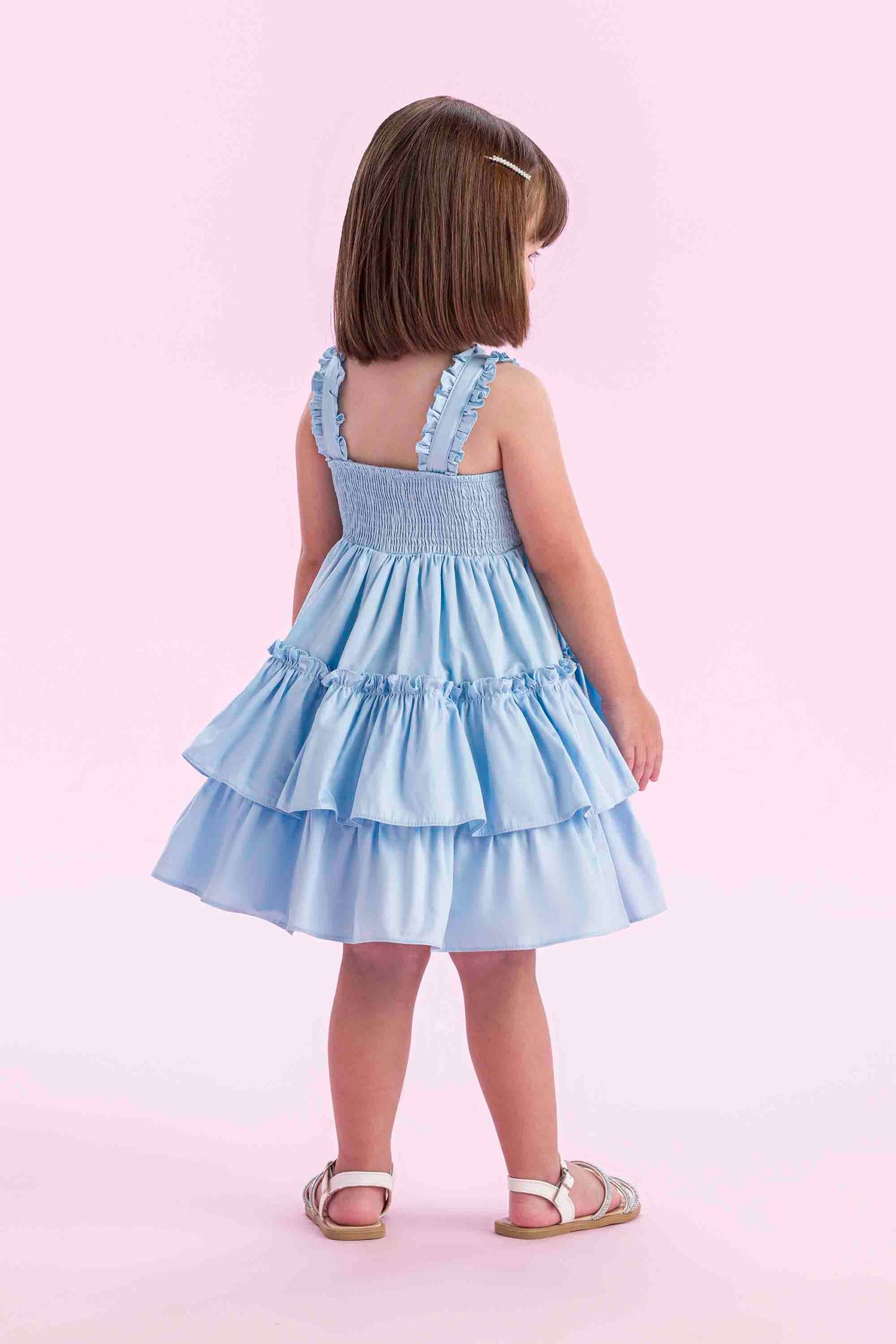 Vestido em tricoline 100% algodão, com bordados delicados de laços