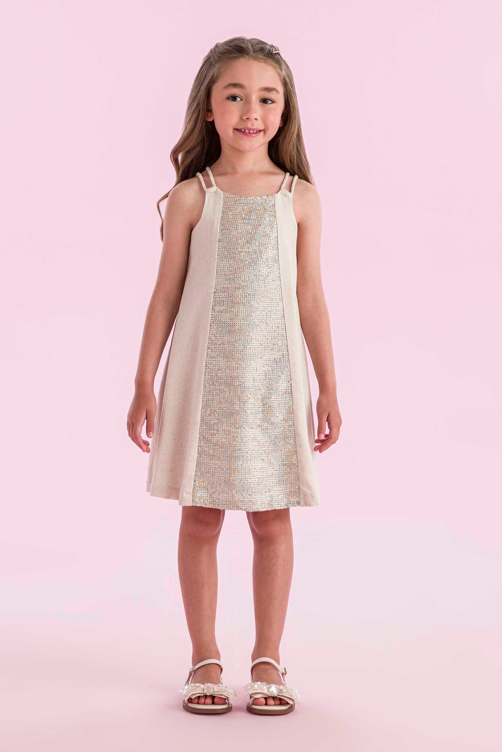 VESTIDO DE LINHO COM PAETÊ – PETIT CHERIE