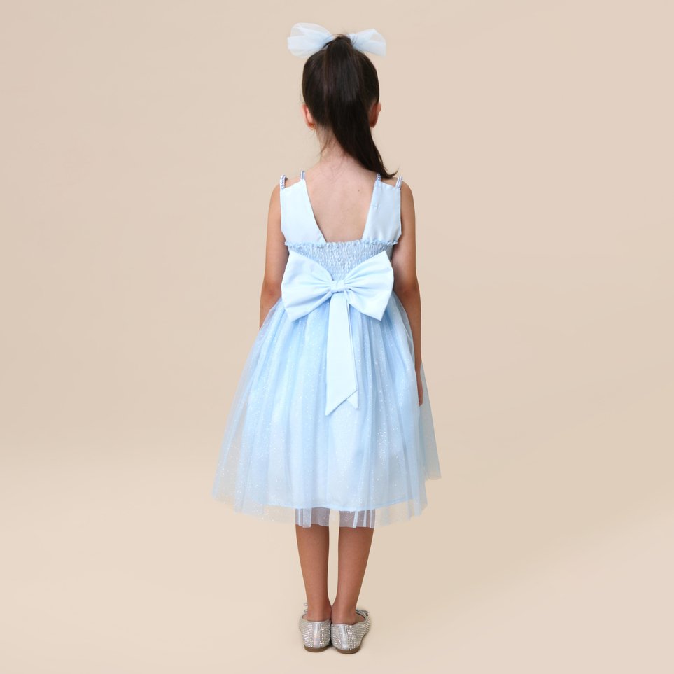 Vestido de tule com bordados e aplicações