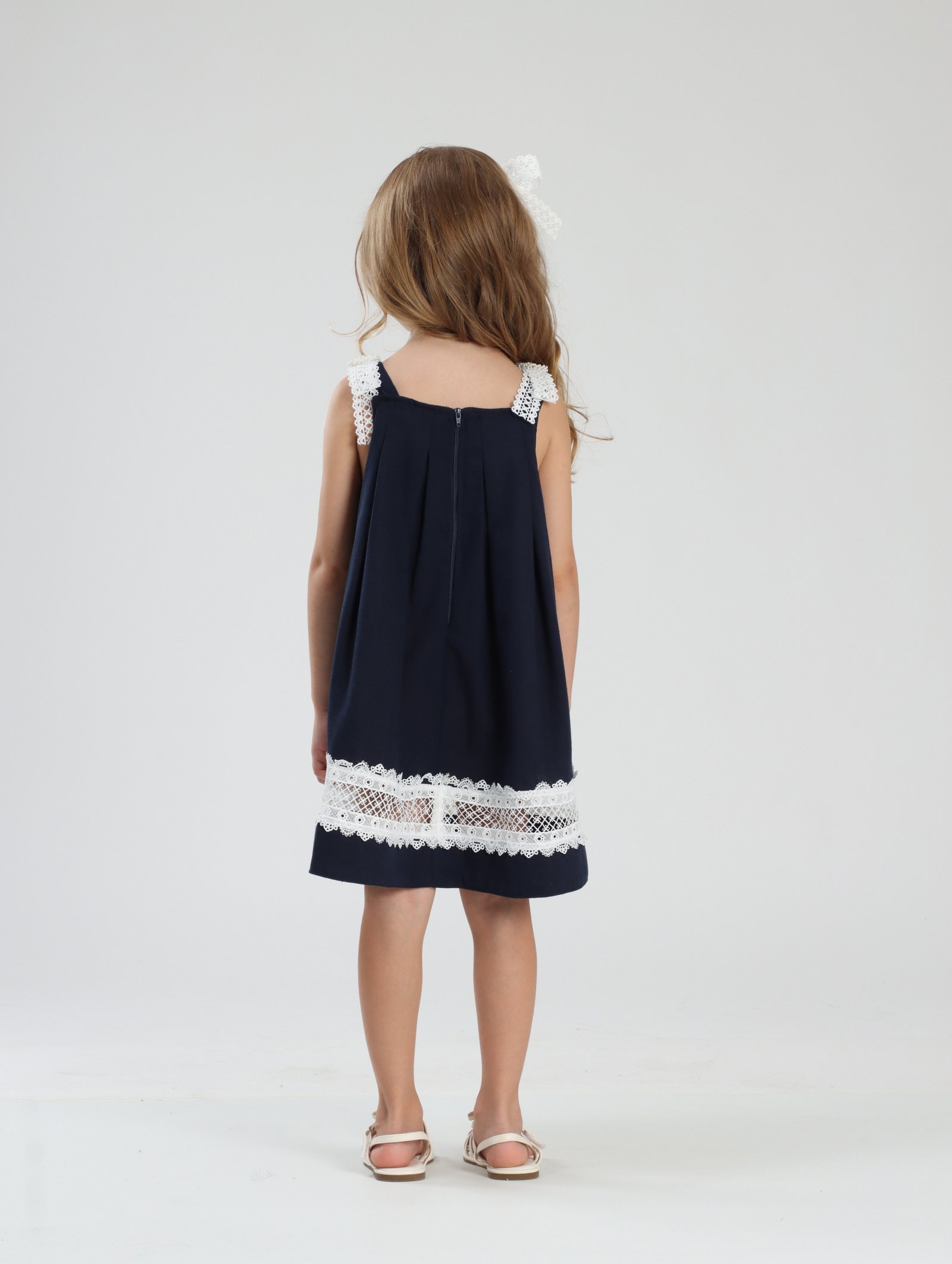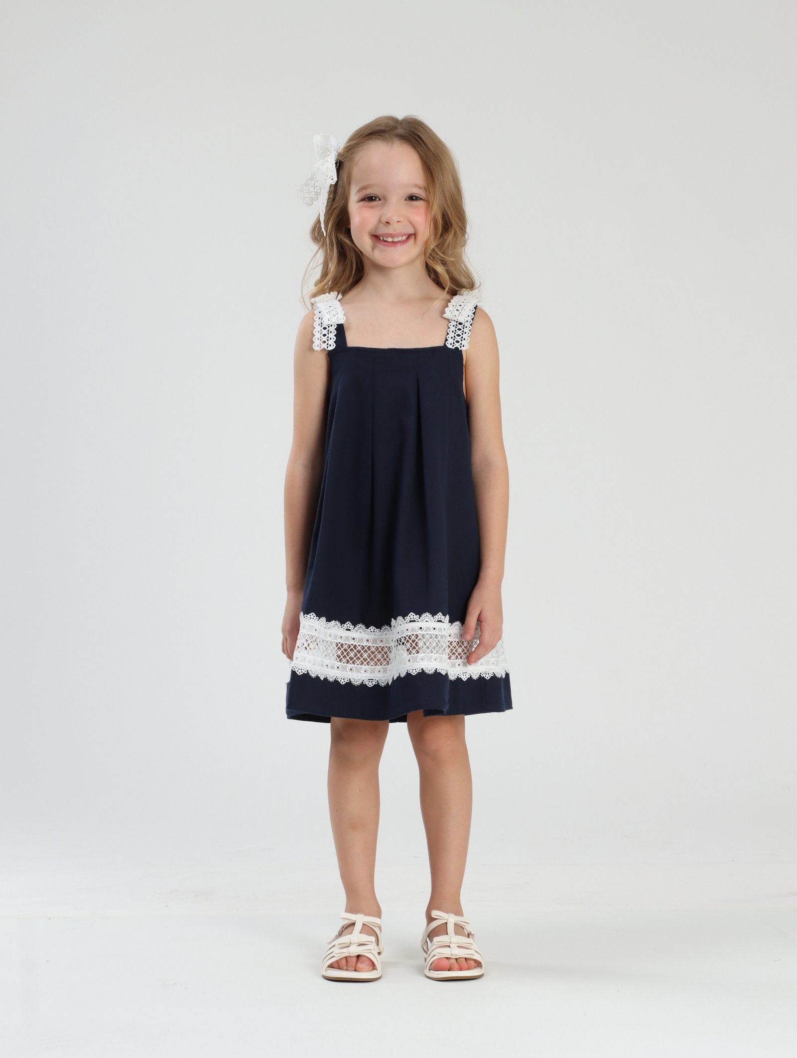 VESTIDO FEMININO INFANTIL RODADO EM LINHO COM BORDADOS PEROLADOS E RENDA NA ALÇA