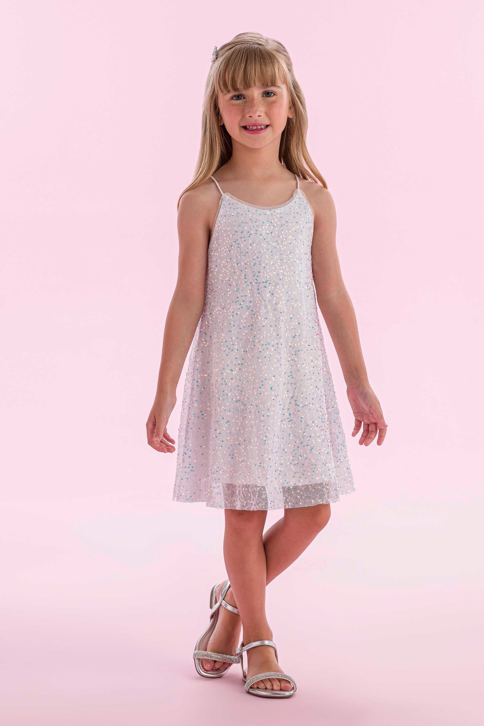 O vestido off white Petit Cherie é a definição de leveza e brilho! Com modelagem soltinha e alcinhas finas, ele apresenta uma camada delicada de tule com paetês que refletem a luz de forma sutil e encantadora. O caimento fluido proporciona movimento e conforto, enquanto o forro suave garante um toque agradável à pele. Uma peça perfeita para momentos especiais, que une o estilo encantador da marca com um toque moderno e luminoso.
